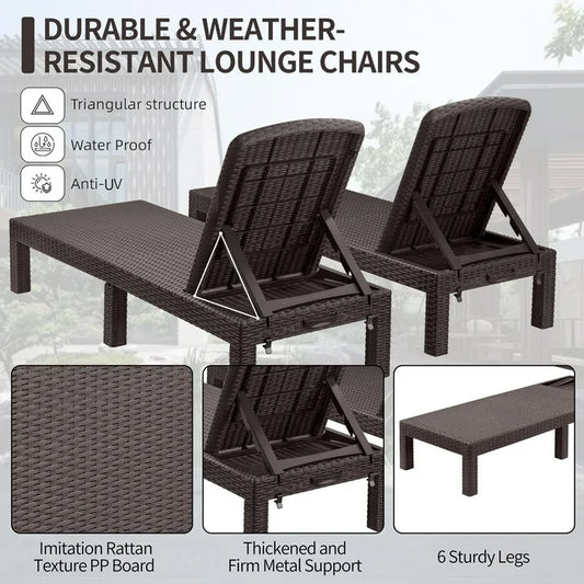Sprilife Patio Lounge Chairs Set of 2, Outdoor Chaise Lounge Chair with 4 Backrest Angles, Patio Foldable Reclining Chair Furniture for Poolside, Deck, Backyard, Brown