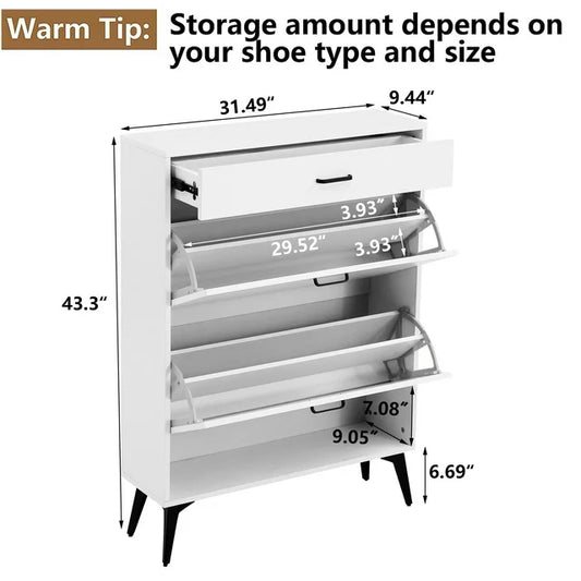 Sprilife Shoe Cabinet with 2 Flip Drawers, Modern 20 Pair Shoe Rack Organizer, Freestanding Tipping Bucket Shoe Storage Cabinet for Entryway, White